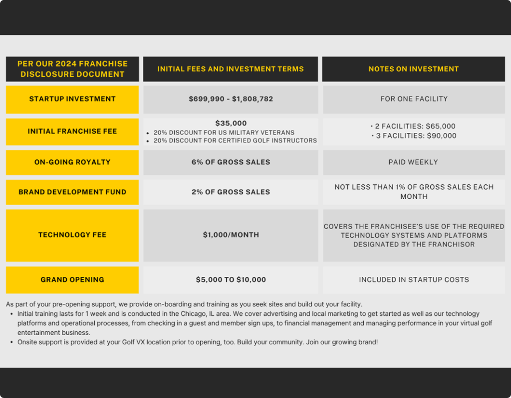 Market Differentiation: Premium design, cutting-edge simulator technology, and a polished hospitality feel give Golf VX Lounges a distinct competitive edge in every market.